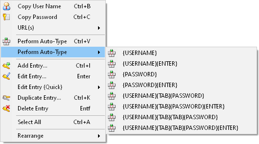 of the currently selected entry (command 'Perform Auto-Type').